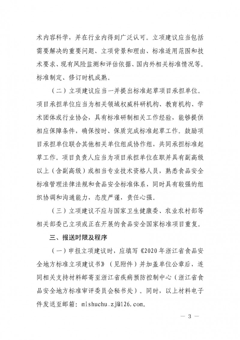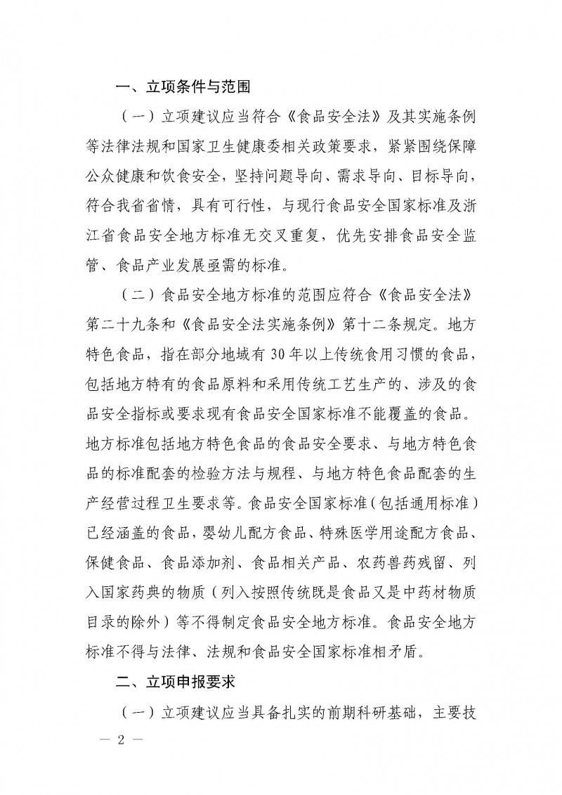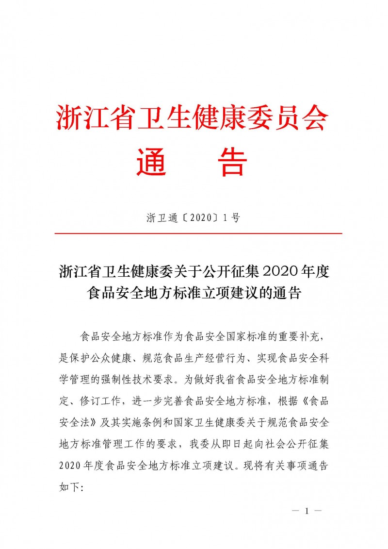 浙江省衛生健康委員會關于公開征集2020年度食品安全地方標準立項建議(浙衛通〔2020〕1號)