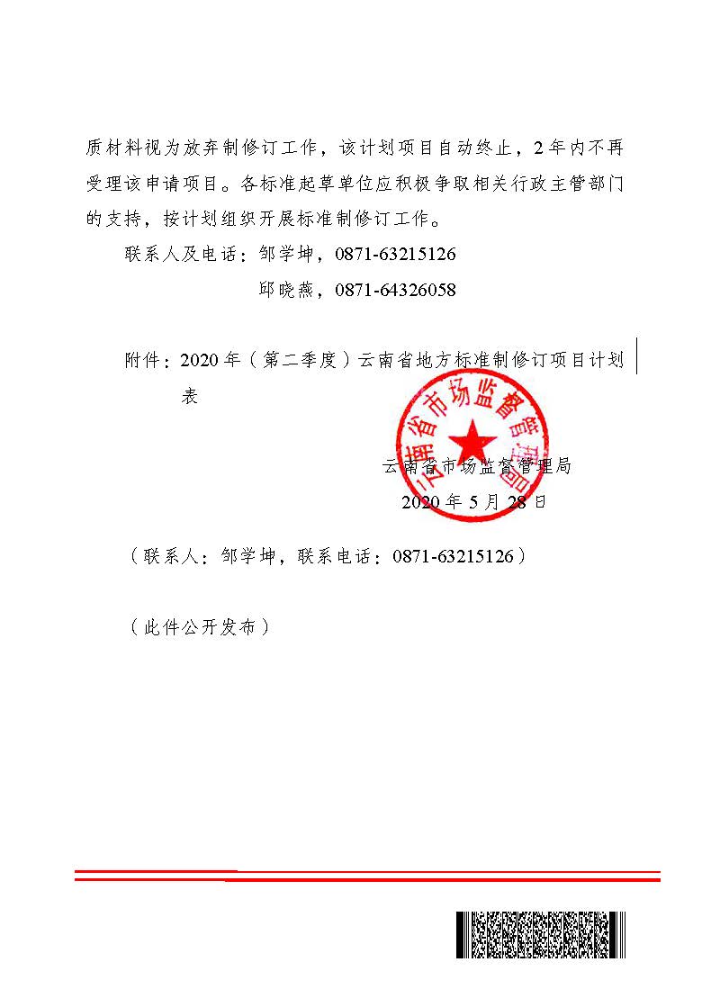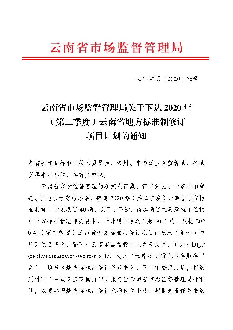 附件 2020 年(第二季度)云南省地方標準制修訂項目計劃表