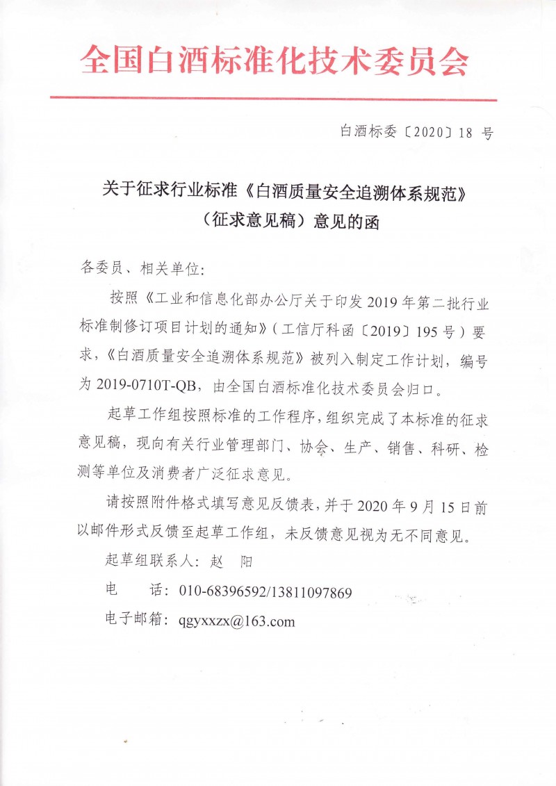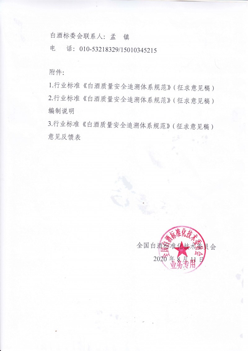 1.行業(yè)標(biāo)準(zhǔn)《白酒質(zhì)量安全追溯體系規(guī)范》(征求意見稿)