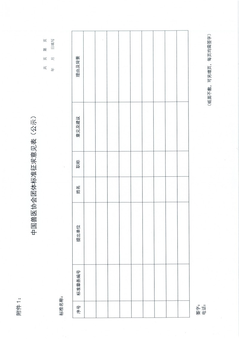 附件1:中國獸醫協會團體標準征求意見表(公示)