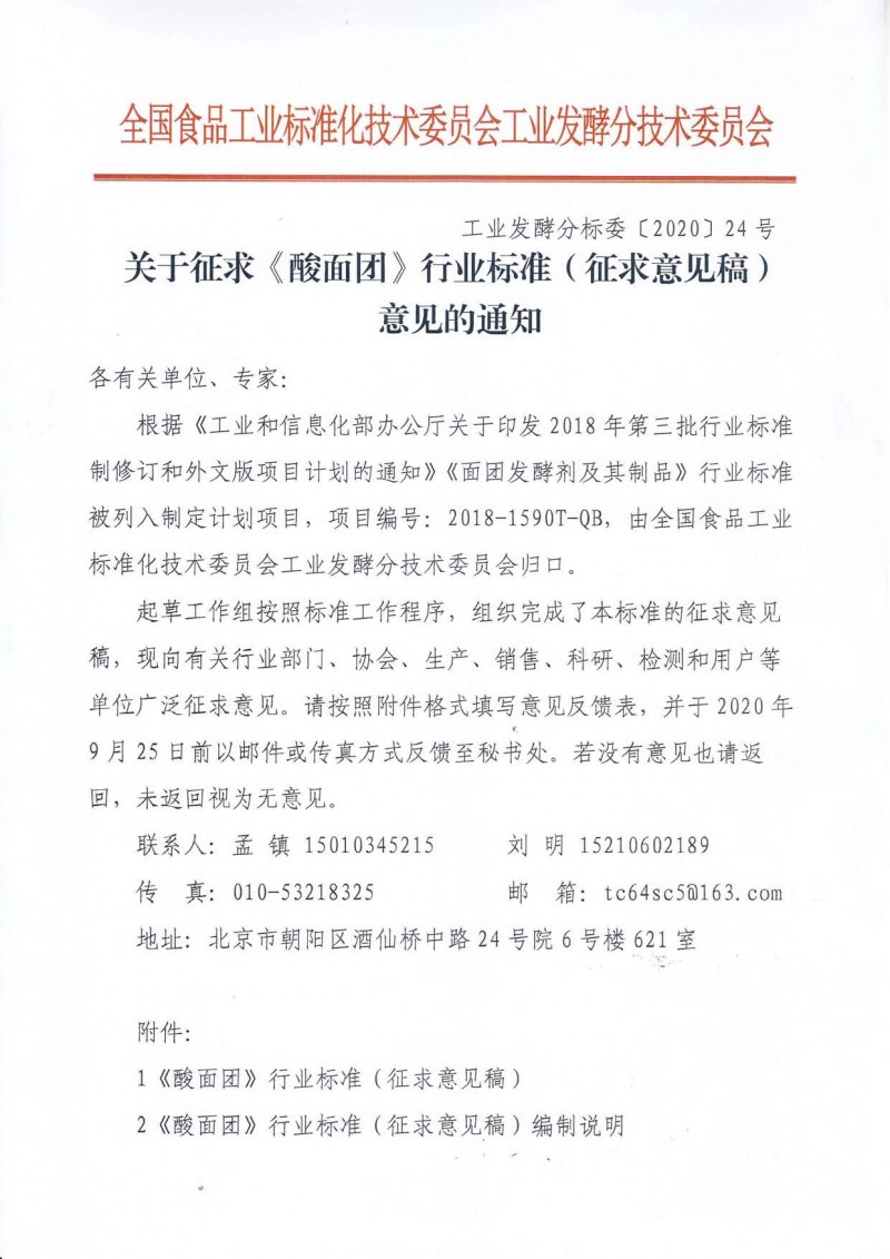 3《酸面團》行業標準(征求意見稿)意見反饋表
