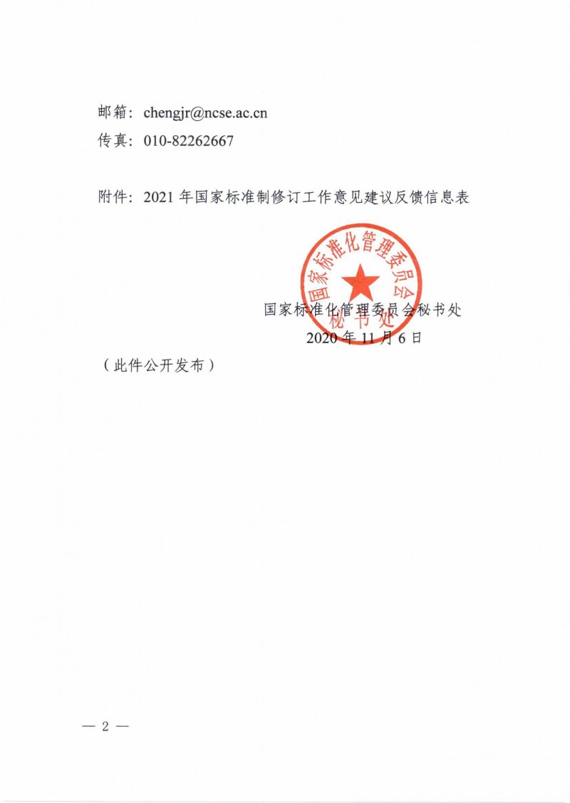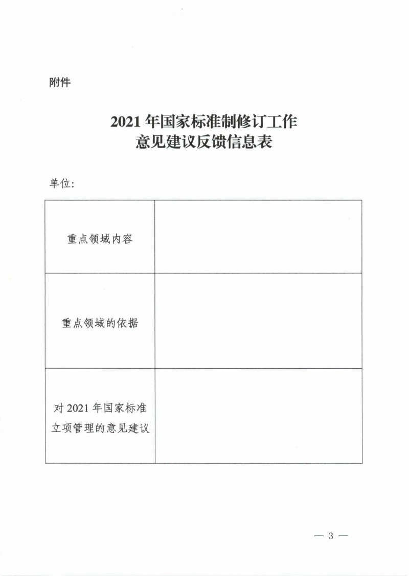 國家標準化管理委員會秘書處關于征求2021年國家標準制修訂工作意見建議的通知(標委秘函〔2020〕49號)