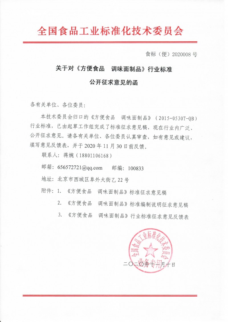關于對《方便食品 調味面制品》行業標準公開征求意見的函.pdf