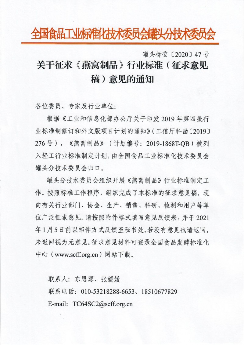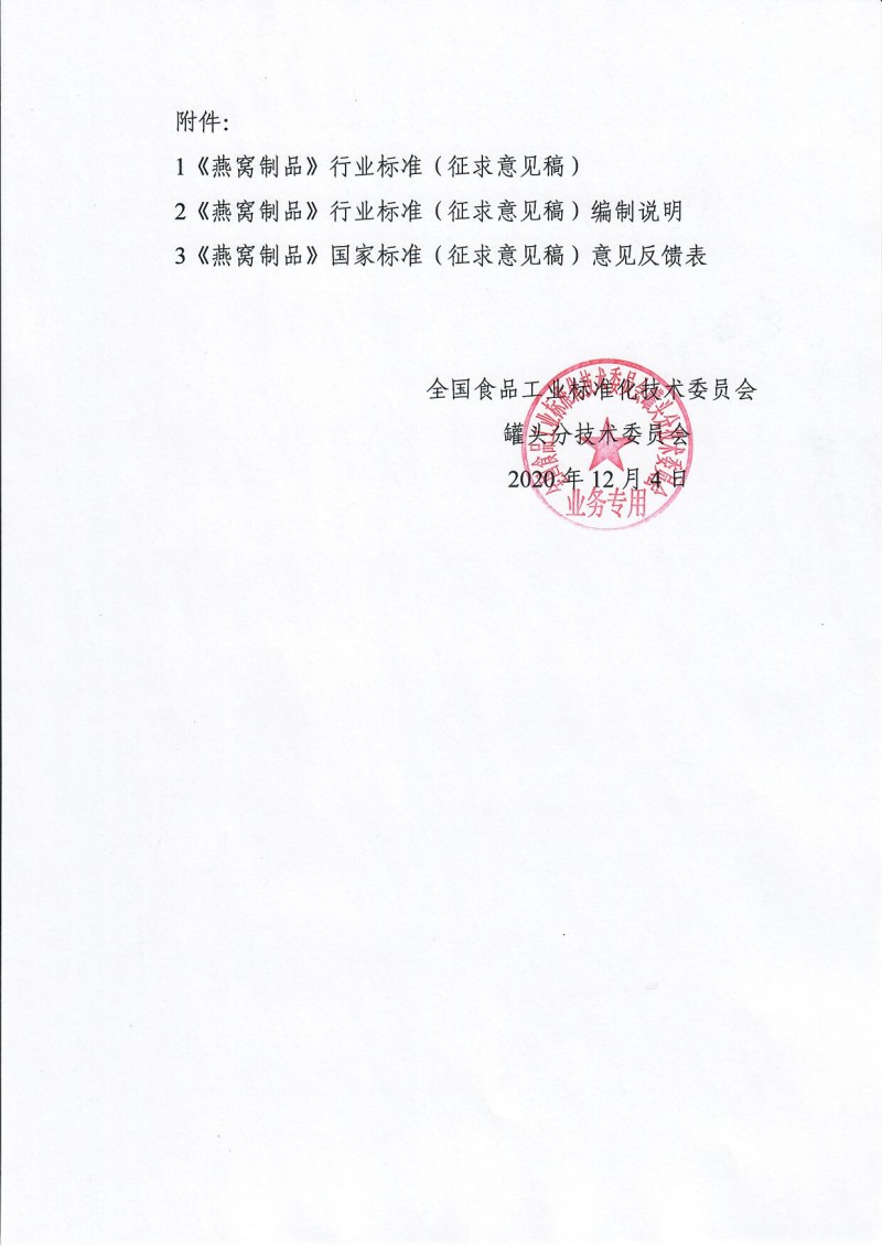 2《燕窩制品》行業標準(征求意見稿)編制說明