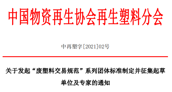根據國務院印發的《深化標準化工作改革方案》(國辦發〔2015〕67號)、國家標準化管理委員會《關于下達團體標準試點工作任務的通知》(標委辦工一[2015]80號)文件精神,以及中國物資再生協會制定的《中國物資再生協會標準管理辦法》(物再協字[2016]19號),“廢塑料交易規范”系列標準將由中國物資再生協會發布,中國物資再生協會再生塑料分會負責組建標準起草工作組及專家組,開展標準起草工作。