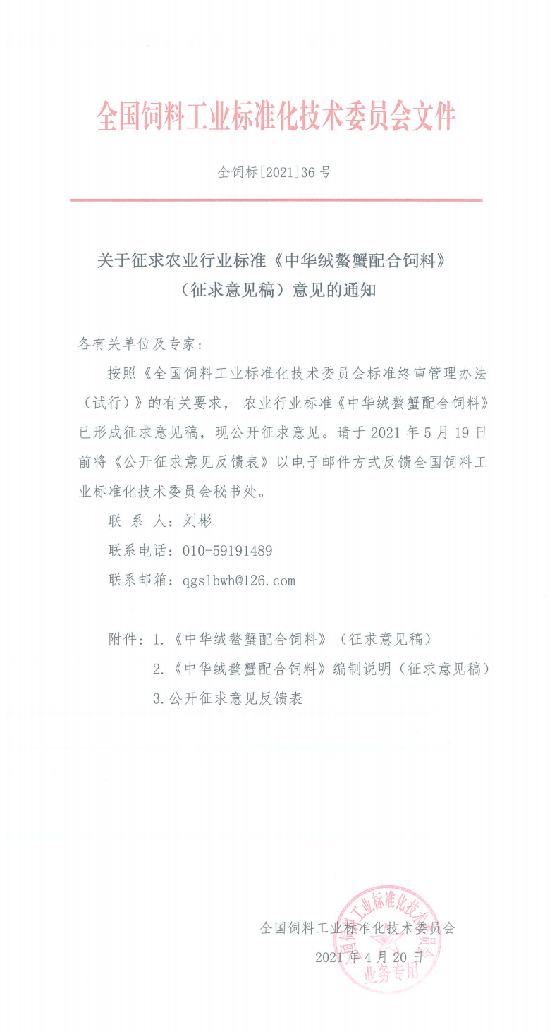 農業行業標準《中華絨螯蟹配合飼料》(征求意見稿)