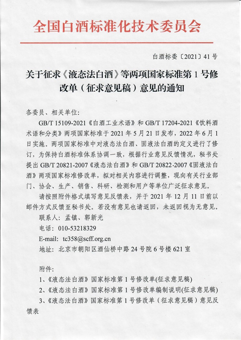 1.《液態法白酒》國家標準第1號修改單(征求意見稿)
