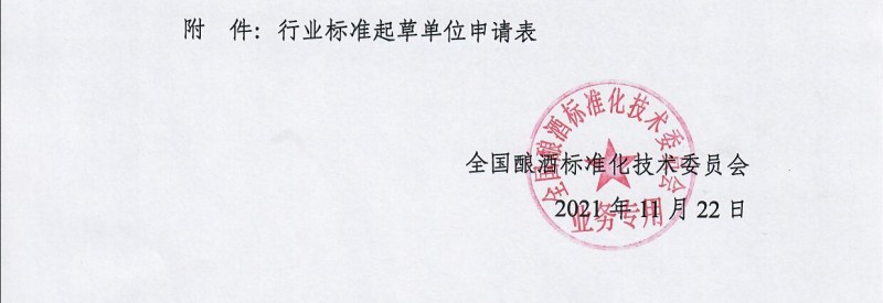 下載中心首頁 » 動態公告 » 標準動態 » 全國釀酒標準化技術委員會關于籌建《果酒 第6部分:荔枝酒》、《果酒 第9部分:蘋果酒》兩項行業標準起草工作組的通知(釀酒標委〔2021〕53號)