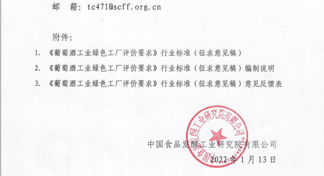 1. 《葡萄酒工業綠色工廠評價要求》行業標準(征求意見稿)