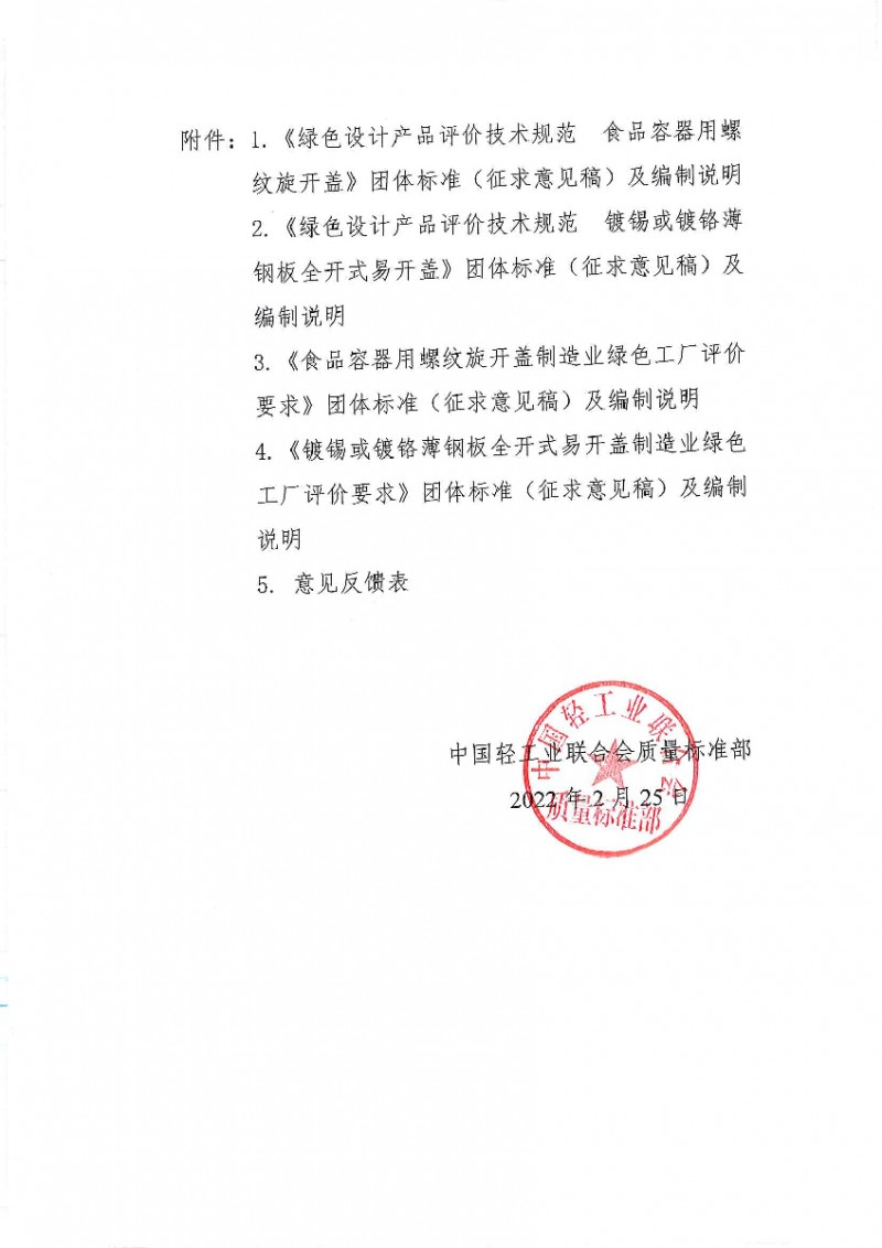 3、2-《綠色設計產品評價技術規范 鍍錫或鍍鉻薄鋼板全開式易開蓋》團體標準(征求意見稿)