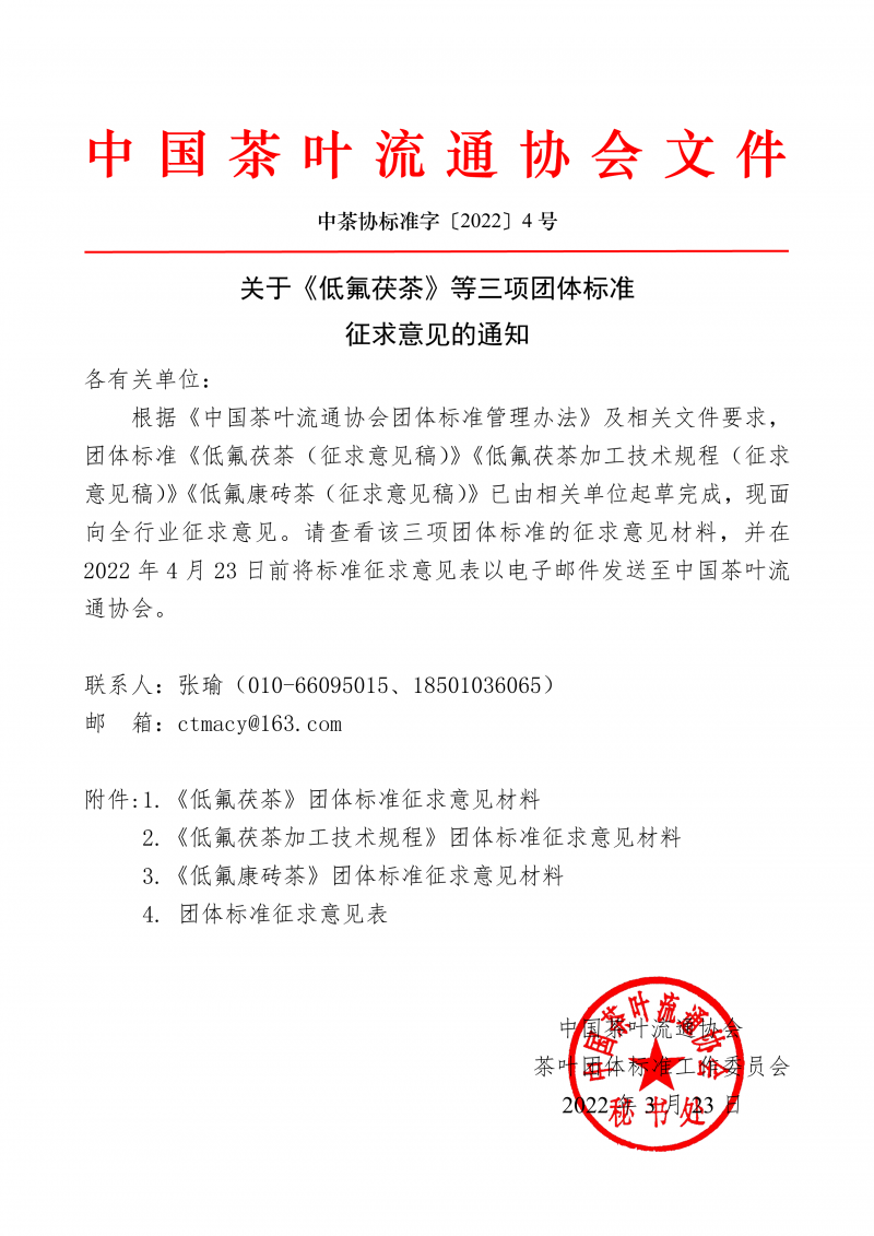 附件:《低氟茯茶》等三項團體標準征求意見材料