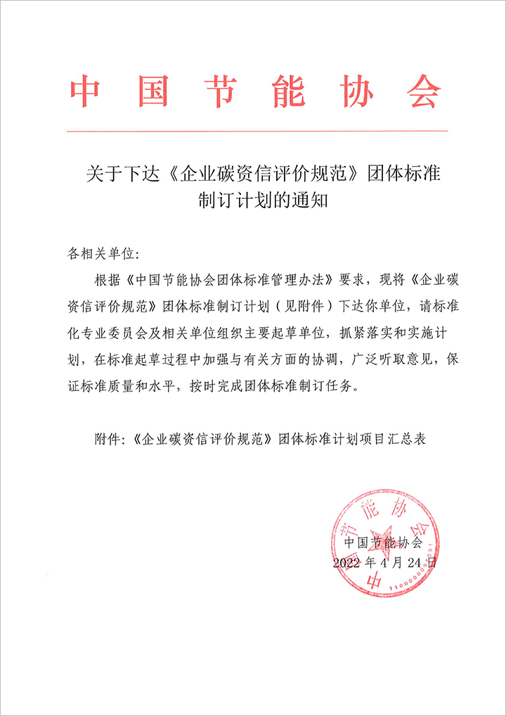 關于下達《企業碳資信評價規范》團體標準制訂計劃的通知.PDF