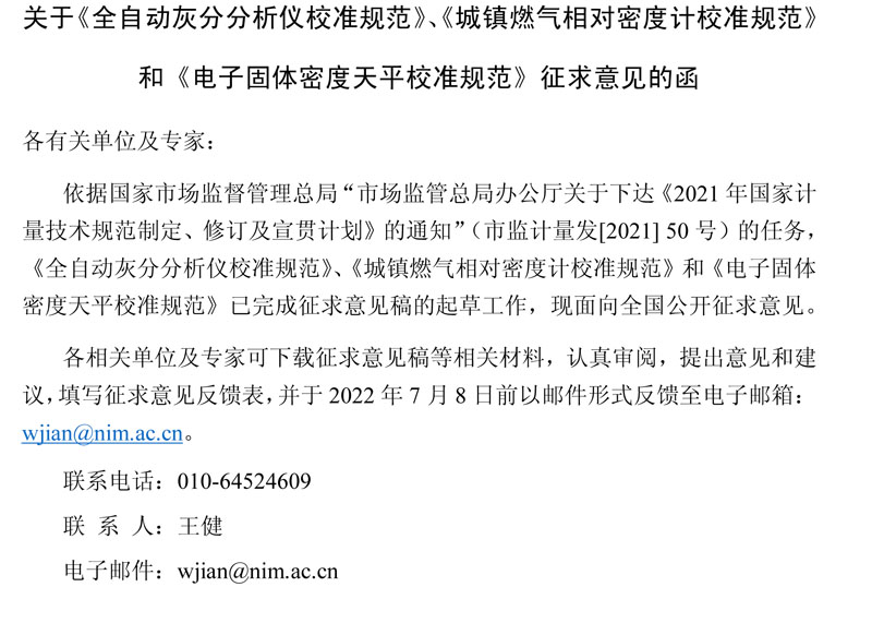 《全自動灰分分析儀校準規范》征求意見稿相關文件