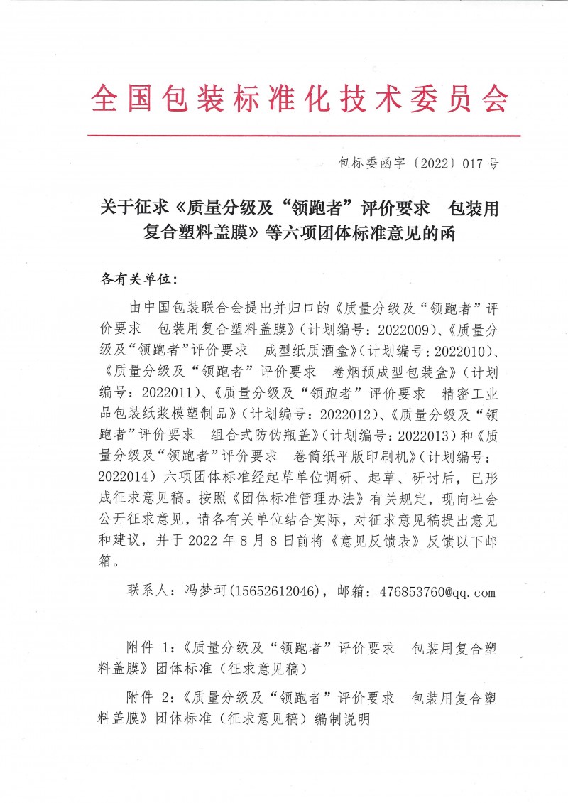 附件1:《質量分級及“領跑者”評價要求包裝用復合塑料蓋膜》團體標準(征求意見稿)