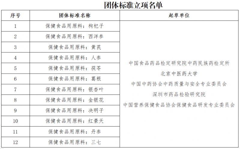 中國營養保健食品協會審議通過了部分團體標準提案,現予立項,名單見附件。