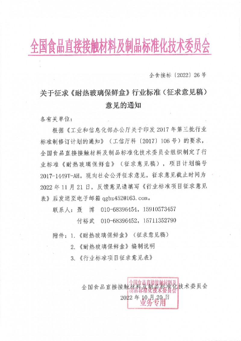 1、《耐熱玻璃保鮮盒》(征求意見稿)