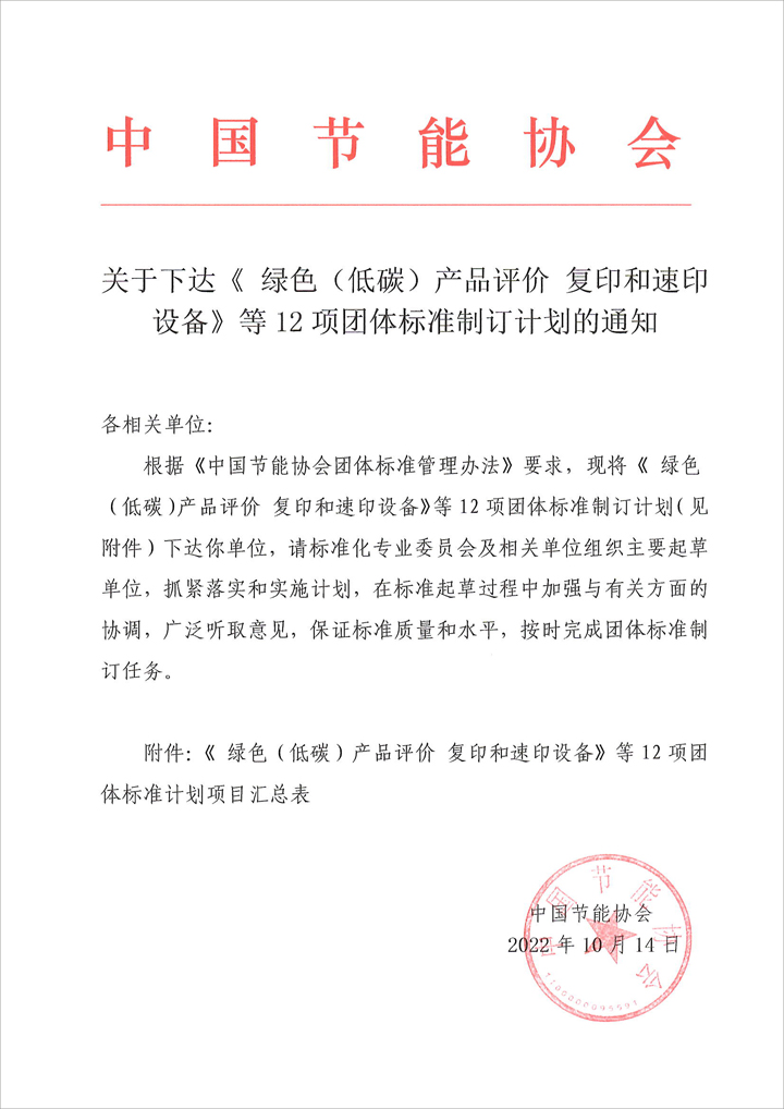 關于下達《綠色(低碳)產品評價 復印和速印設備》等12項團體標準制訂計劃的通知.PDF