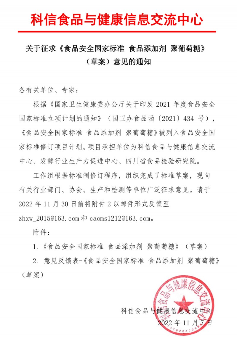 附件1《食品安全國家標準 食品添加劑 聚葡萄糖》(草案)