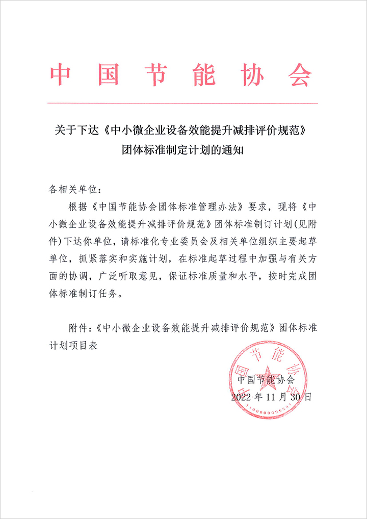 關(guān)于下達(dá)《中小微企業(yè)設(shè)備效能提升減排評(píng)價(jià)規(guī)范》團(tuán)體標(biāo)準(zhǔn)制定計(jì)劃的通知.PDF