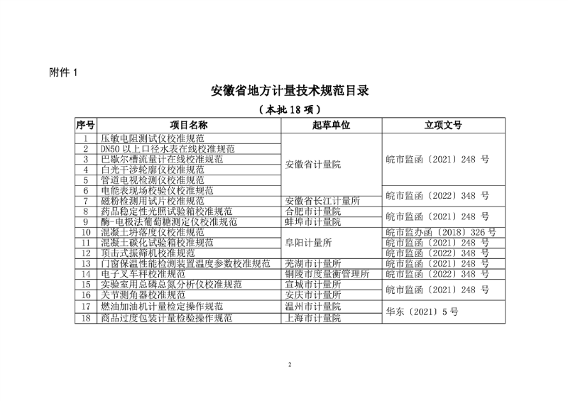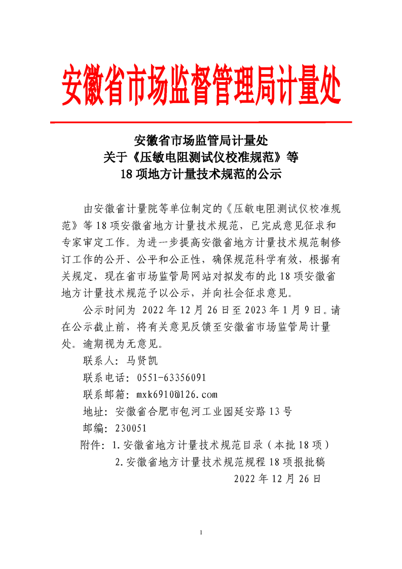 安徽省市場監管局計量處關于《壓敏電阻測試儀校準規范》等18項地方計量技術規范的公示