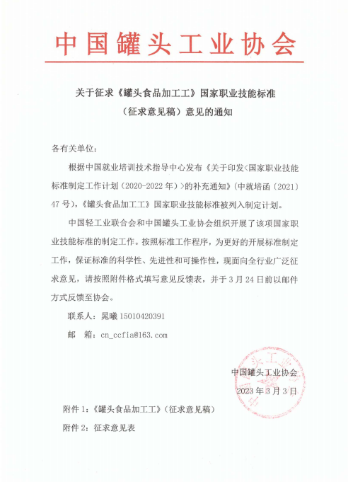 點(diǎn)擊下載文件:附件1:罐頭食品加工工職業(yè)技能標(biāo)準(zhǔn)(征求意見(jiàn)稿)20230227.pdf