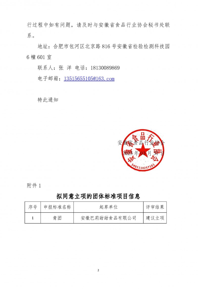 安徽省食品行業協會關于下達《青團》團體標準立項的通知