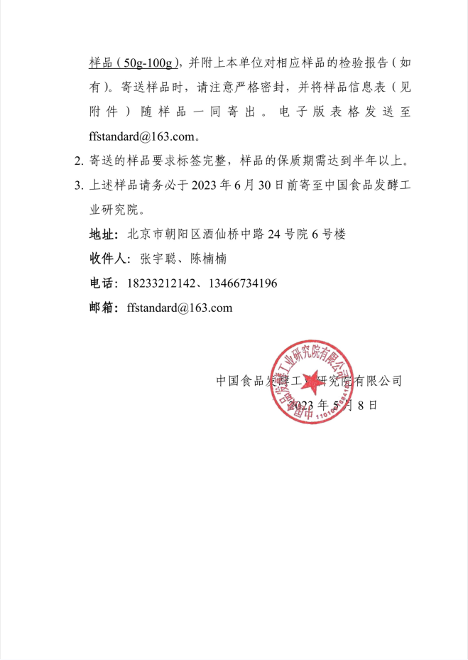 核心提示:中國食品發酵工業研究院有限公司關于《食源性肽粉通則》、《食用動物血蛋白肽》和《淡水魚蛋白肽》三項標準制修訂工作征集樣品的通知,截止時間2023年6月30日。