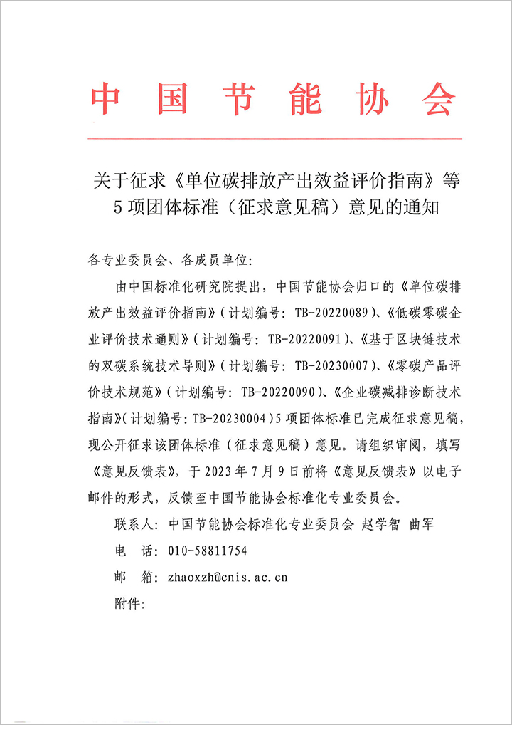 關于征求《單位碳排放產出效益評價指南》等5項團體標準(征求意見稿)意見的通知.pdf