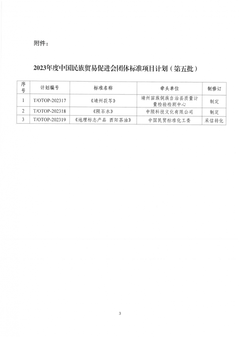 關于發(fā)布中國民族貿(mào)易促進會2023年度團體標準項目計劃(第五批)的通知(中民貿(mào)[2023]56號)