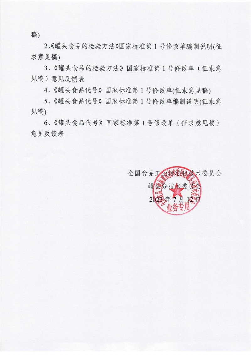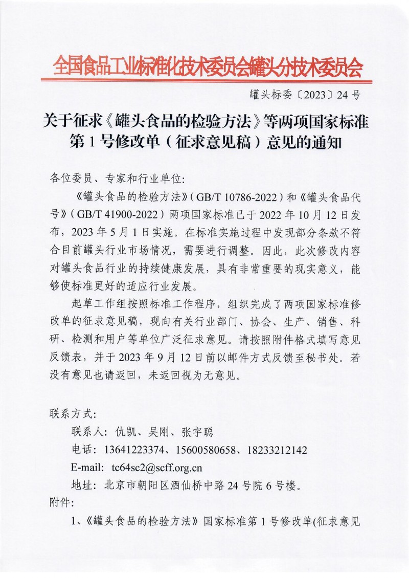 1、《罐頭食品的檢驗方法》國家標準第1號修改單(征求意見稿)