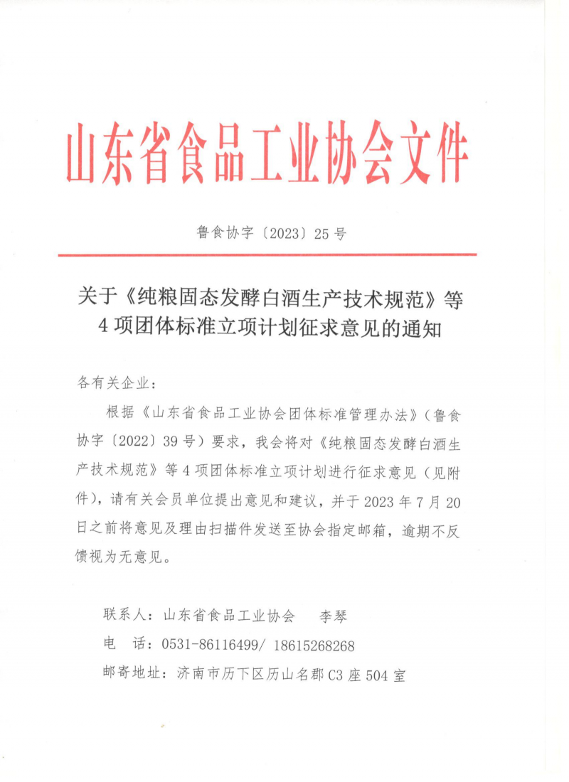 25號 關于《純糧固態發酵白酒生產技術規范》團體標準立項計劃征求意見的通知.pdf