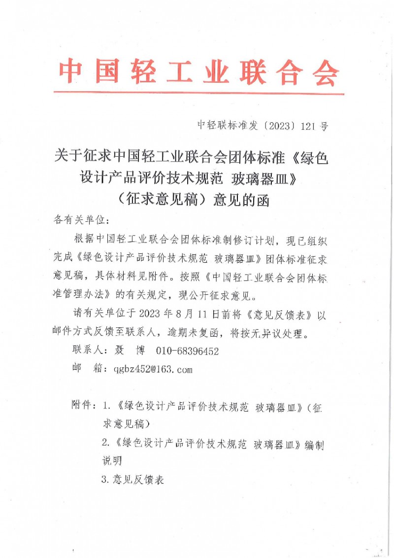 1、《綠色設計產品評價技術規范 玻璃器皿》 (征求意見稿)
