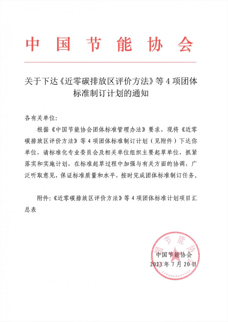 關于下達《近零碳排放區評價方法》等4項團體標準制訂計劃的通知.pdf