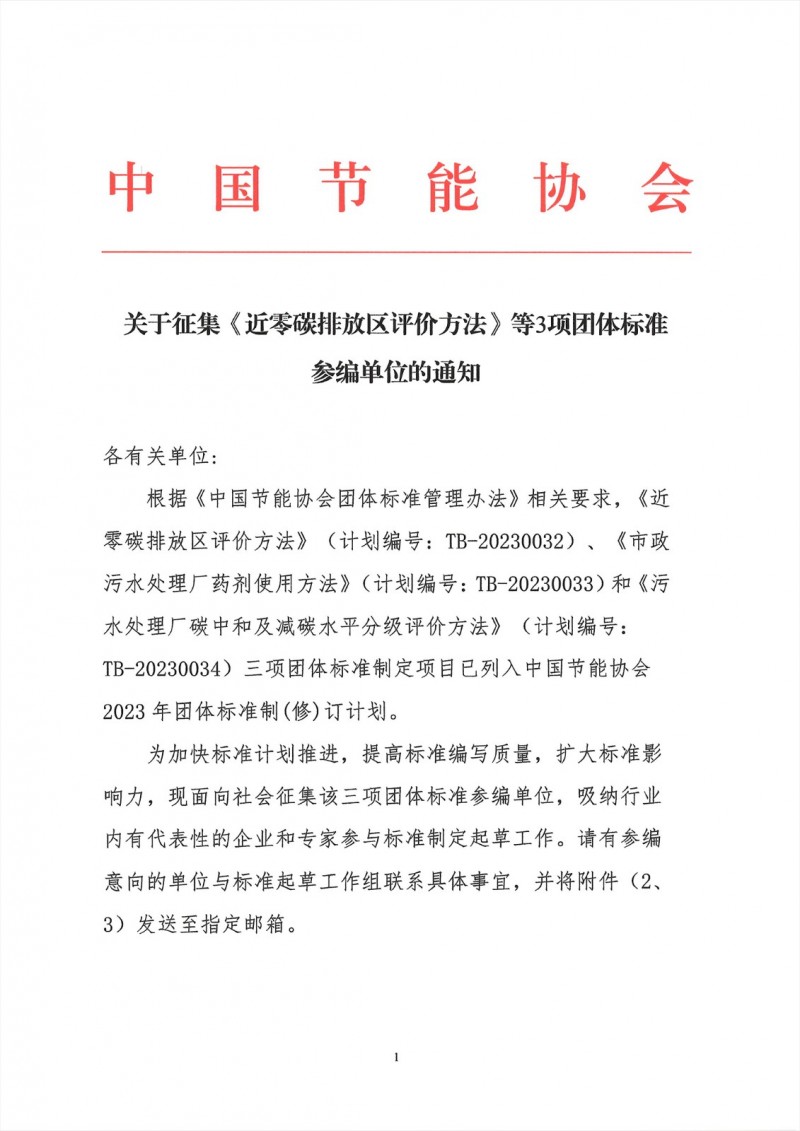 關(guān)于征集《近零碳排放區(qū)評價方法》等3項團體標準參編單位的通知.PDF
