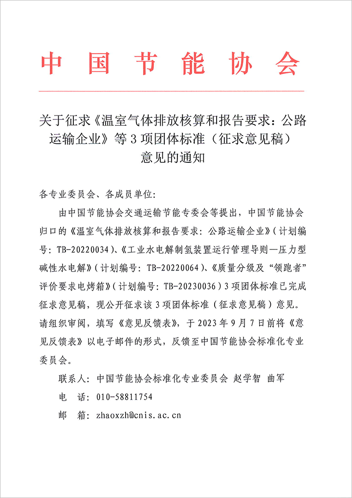 關于征求《溫室氣體排放核算和報告要求:公路運輸企業》等3項團體標準(征求意見稿)意見的通知.PDF