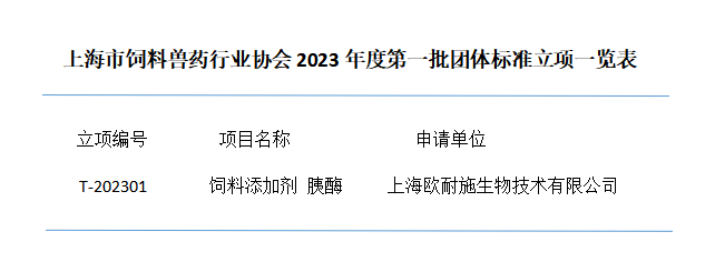 根據《上海市飼料獸藥行業協會團體標準管理辦法》 (滬飼獸協(2023) 02號) 規定,經上海市飼料獸藥行業協會組織專家進行立項評議并研究決定,批準《飼料添加劑 胰酶》團體標準立項。