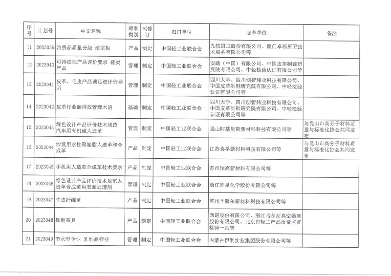 下載中心首頁 » 動態公告 » 標準動態 » 關于下達《節水型企業 乳制品行業》等21項中國輕工業聯合會團體標準計劃的通知(中輕聯標準[2023]248號)