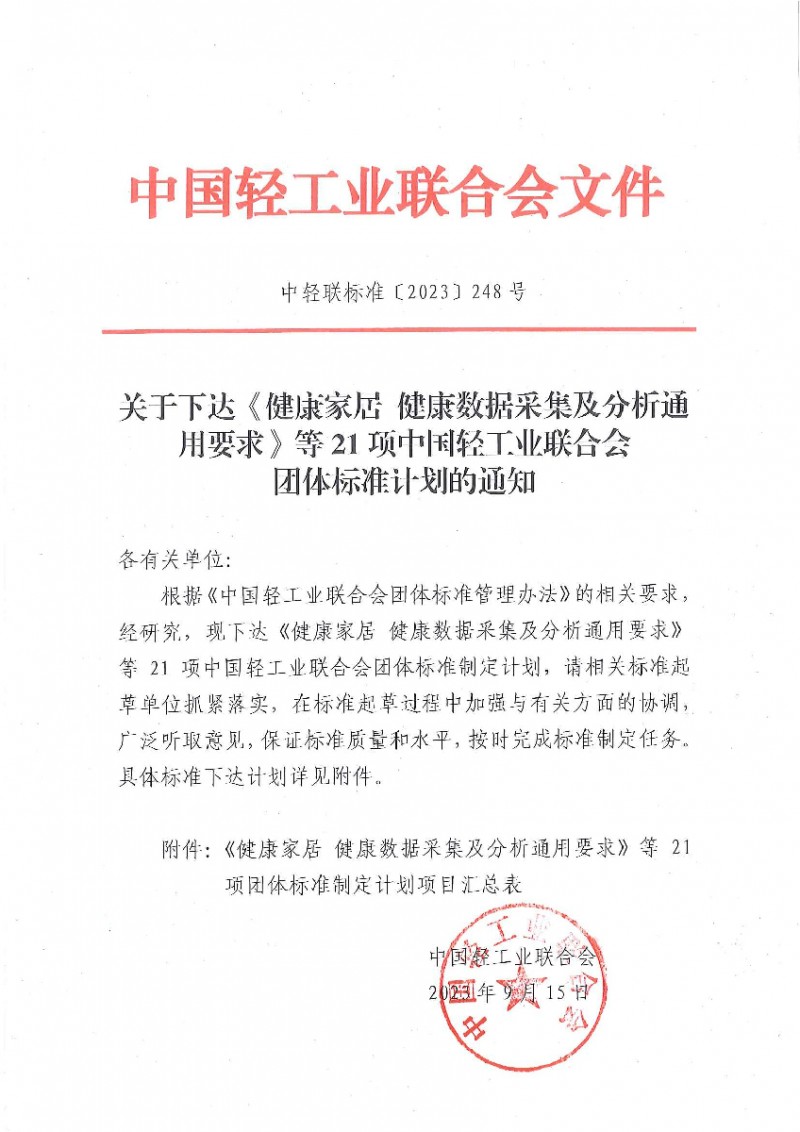 關于下達《節水型企業 乳制品行業》等21項中國輕工業聯合會團體標準計劃的通知(中輕聯標準[2023]248號)
