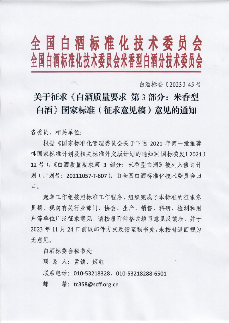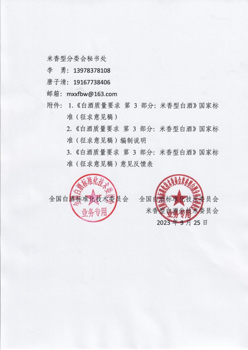 附件:1.《白酒質(zhì)量要求 第3部分:米香型白酒》國家標準(征求意見稿)