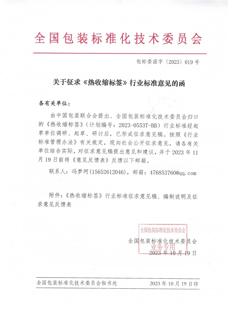 《熱收縮標(biāo)簽》行業(yè)標(biāo)準(zhǔn)(征求意見稿)