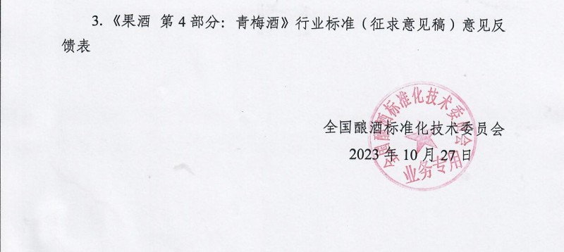《果酒 第4部分:青梅酒》行業標準(征求意見稿)