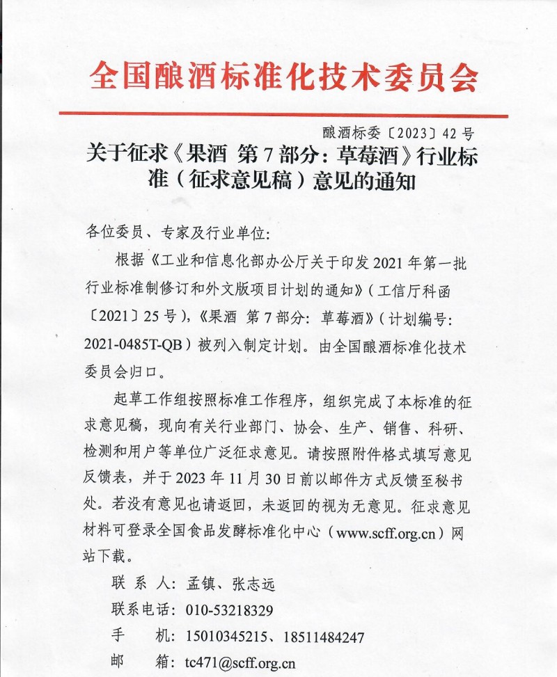 1.《果酒 第7部分:草莓酒》行業(yè)標準(征求意見稿)