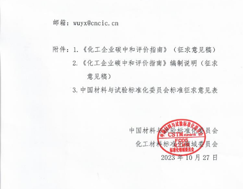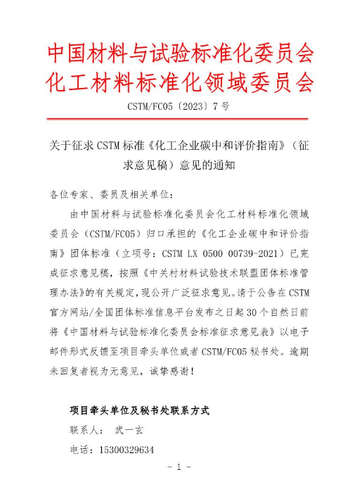 中關村材料試驗技術聯盟《化工企業碳中和評價指南》征求意見函(CSTM/FC05[2023]7號)
