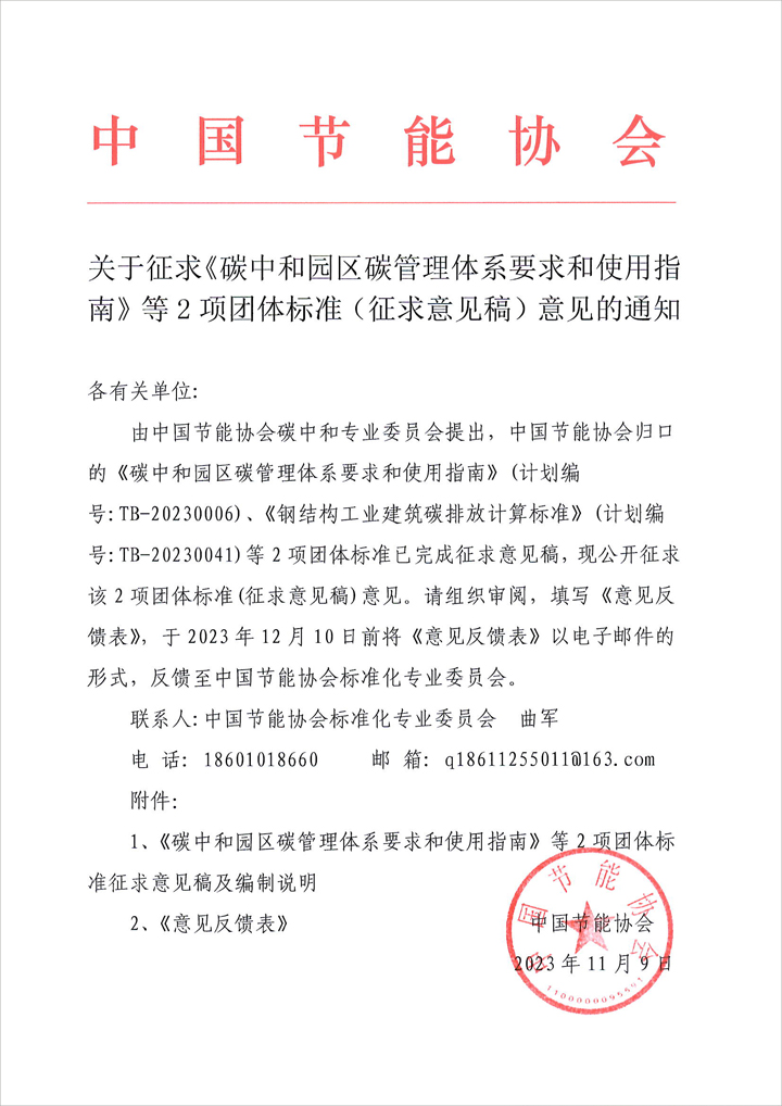 關(guān)于征求《碳中和園區(qū)碳管理體系要求和使用指南》等2項團體標準(征求意見稿)意見的通知.PDF