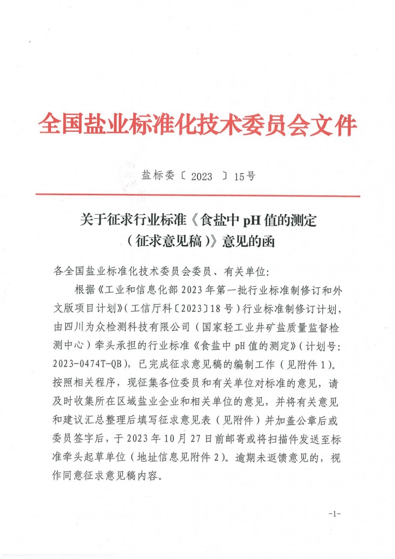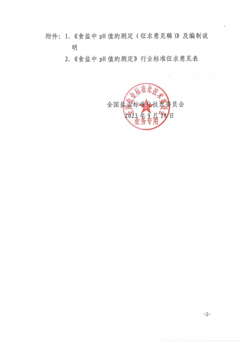 全國鹽標委關于征求《食鹽中PH值的測定》行業標準意見的函.pdf