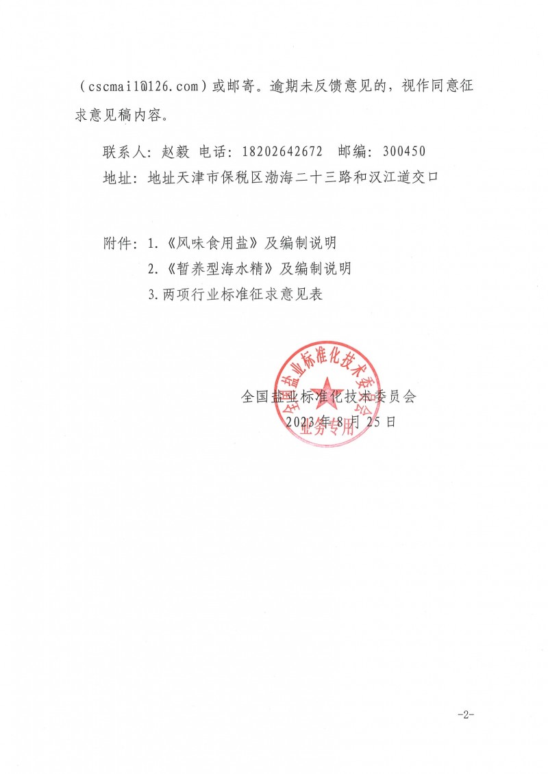 全國鹽標委關(guān)于征求《風味食用鹽》《暫養(yǎng)型海水精》行業(yè)標準意見的通知