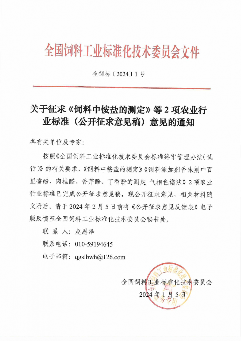 1.關(guān)于征求《飼料中銨鹽的測(cè)定》等2項(xiàng)農(nóng)業(yè)行業(yè)標(biāo)準(zhǔn)(公開(kāi)征求意見(jiàn)稿)意見(jiàn)的通知.pdf