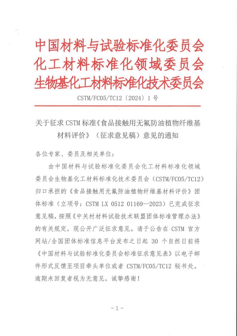 附件:CSTM團(tuán)體標(biāo)準(zhǔn)《食品接觸用無氟防油植物纖維基材料評價》征求意見的資料