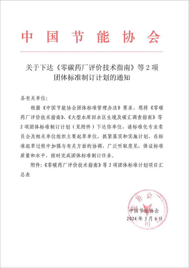 關(guān)于下達(dá)《零碳藥廠(chǎng)評(píng)價(jià)技術(shù)指南》等2項(xiàng)團(tuán)體標(biāo)準(zhǔn)制訂計(jì)劃的通知.PDF