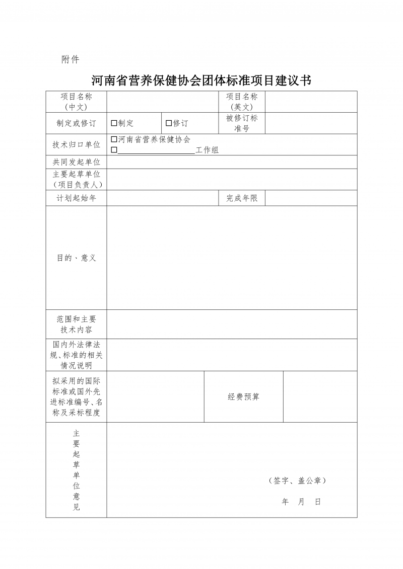 1.提交《團體標準項目建議書》(見附件),材料應填寫完整、詳實,說明標準的必要性、可行性等;